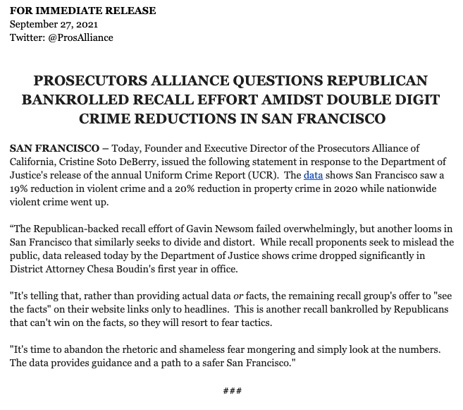 @SusanDReynolds statistics over more reliable sources. Stop blaming the DA. Stop fear-mongering! https://twitter.com/ProsAlliance/status/1442623304771063813?s=20 … & https://www.nytimes.com/2021/09/27/us/fbi-murders-2020-cities.html …G Love added,