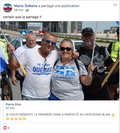 Une autre question, n'est-ce pas normal que la GRC s'inquiètent de gens qui font partie d'un groupe qui est proche de l'extrême droite ? Un membre de ce groupe parlait même de faire un faux attentat pour réveiller les gens... https://twitter.com/LetroupeauQC/status/974781332969738240 …pic.twitter.com/fQRqjygCZV