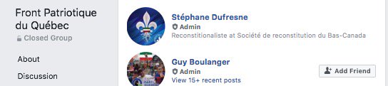 Un des admins de ce groupe Stéphane Dufresne parlait de faire un "faux attentat terroriste" pour réveiller les gens. Il est aussi membre de la Meute. https://twitter.com/LetroupeauQC/status/974781332969738240 …pic.twitter.com/X6yYPmPX9r