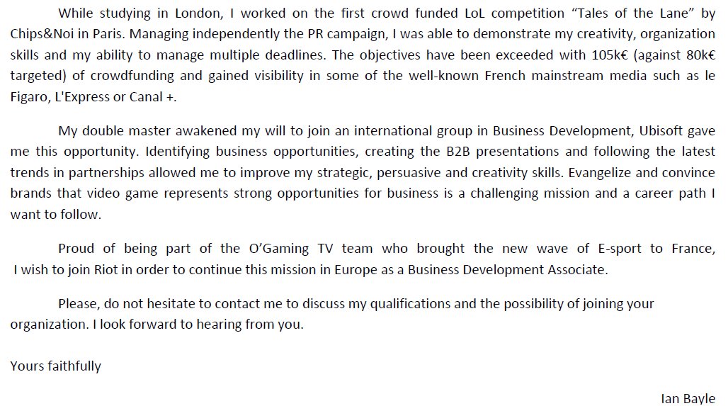 Looking back at my previous applications, I found my motivation letter I wrote to @riotgames in 2014 when I was looking for my first job. Got 7 interviews and did not get it in the end but damn I was CONFIDENT 🔥 Remember: skills + examples to show it! Thoughts @Sunset_SC2 ?pic.twitter.com/mNz6faZKQQ