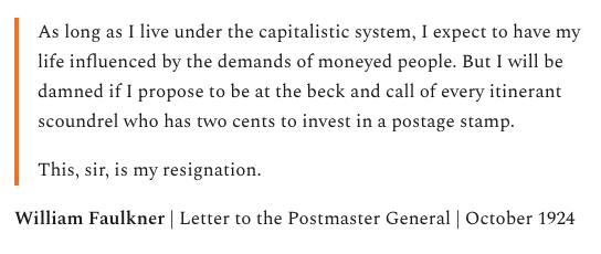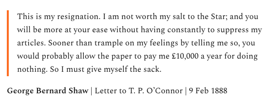 'I must give myself the sack' — How to resign, featuring Richard Nixon, William Faulkner, Emma Thompson, George Bernard Shaw, Ursula K. Le Guin, and others: https://news.lettersofnote.com/p/i-must-give-myself-the-sack …pic.twitter.com/8NWrsTaKJd