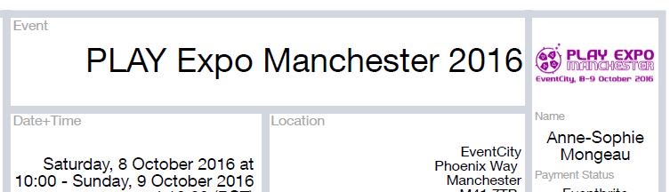 Got my ticket for Play Expo in Manchester!! @samhughes88 @CCP_Sine will see you there! :) @alexismavro1 you coming?pic.twitter.com/t3X8a1n0e4