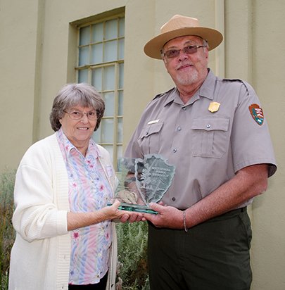 Richard Basch presents Sharon Stewart, Friends of Sacajawea State Park with @MidwestNPS Partnership Award. Congrats!pic.twitter.com/hPKCugzY0e