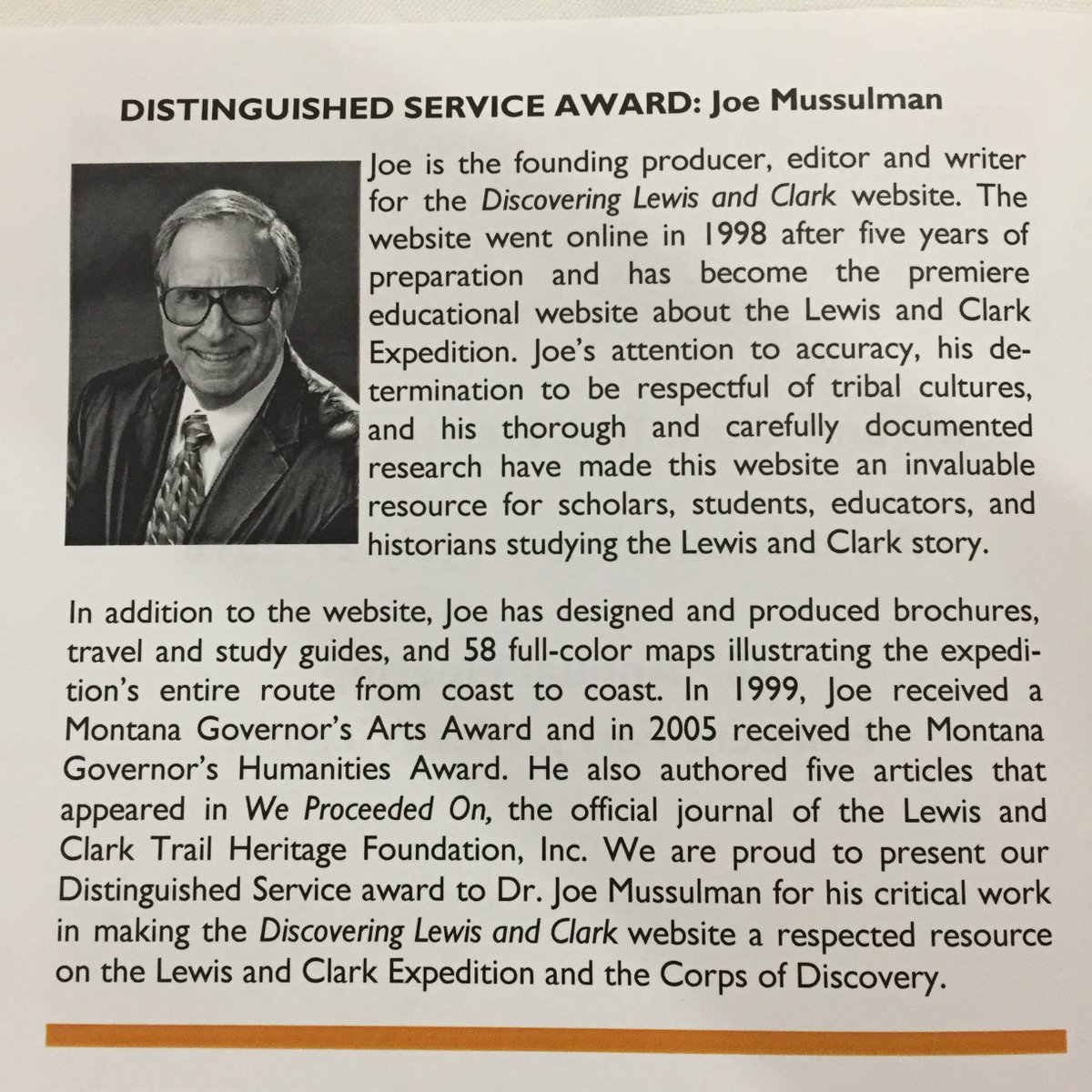Joe Mussulman: producer & writer of http://www.lewis-clark.org is the recipient of LCTHF Distinguished Service Awardpic.twitter.com/aUlB0UXCQf