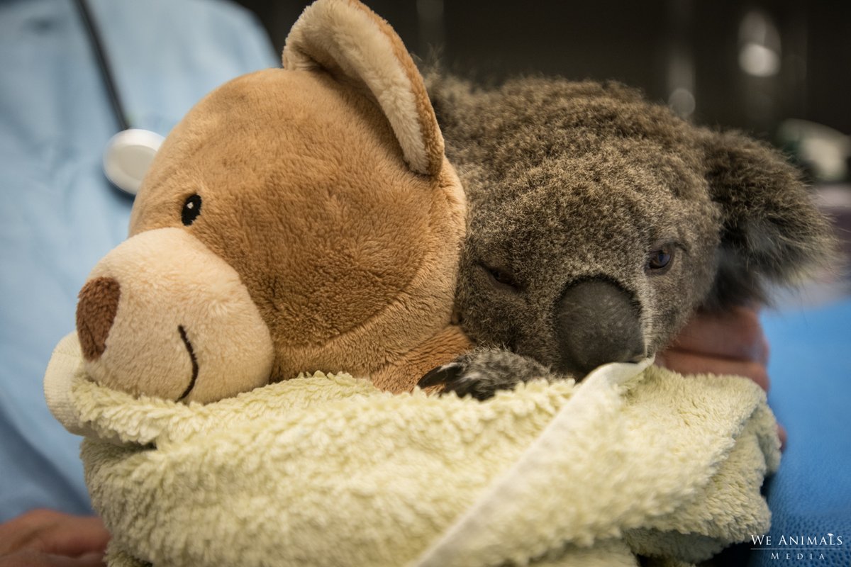 #Koalas feel much more secure when they can hold on to something tightly. This little one was orphaned in the#bushfires and is recovering from wounds at Southern Cross Wildlife Care. When koalas need to be examined, they give them a teddy bear to cling to.pic.twitter.com/NbT6rRLFs4