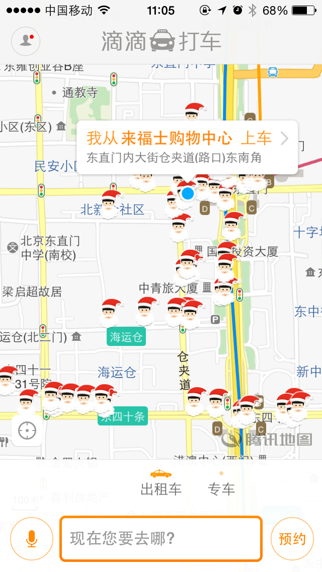 Spooky to see so many Santas on the streets of BJ. Even spookier when a taxi app announces Santa's coming to get you.pic.twitter.com/JSKWxJr0hJ