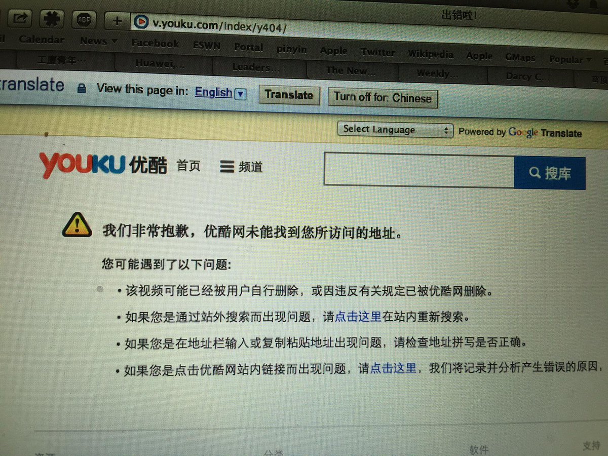 @LiYuan6 Search on YouKu yields message saying that " We are very sorry.. couldn't be found"pic.twitter.com/EaN35HatYN