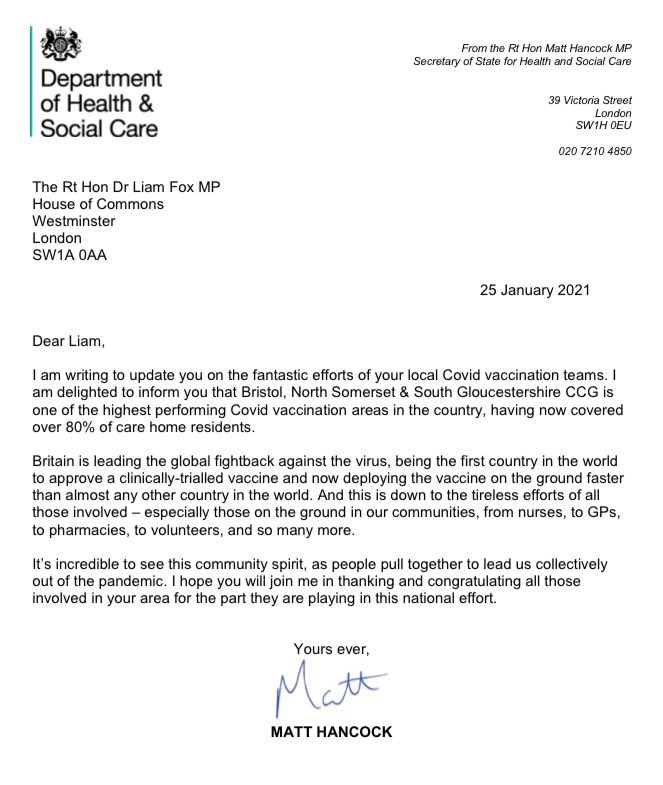 @MattHancock that Bristol, North Somerset & South Gloucestershire CCG is one of the highest performing#Covid#vaccination areas in the country, having now covered over 80% of care home residents.#Covid19#CovidVaccine#coronavirus#Covid_19#Covid19UKpic.twitter.com/mC1CvxAnew