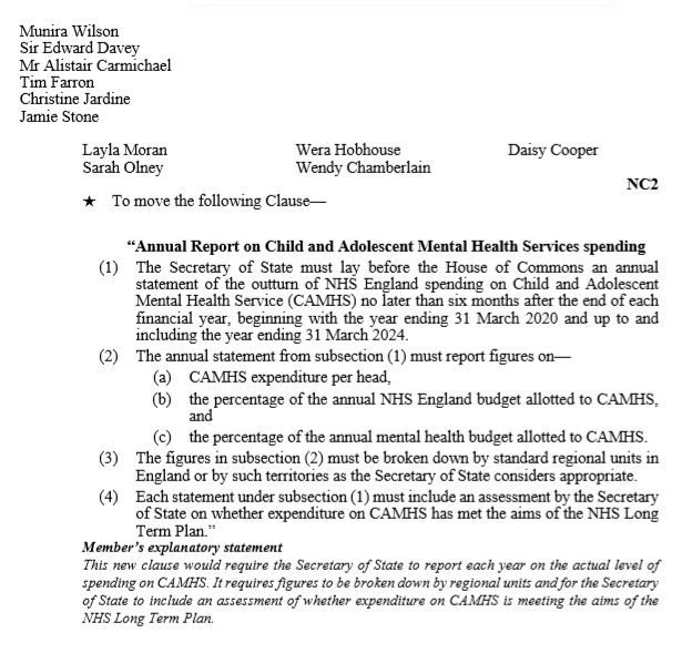Tabled my 1st ever amendment to a Bill! My NHS Funding Bill amd improves transparency on Gov spending on children’s mental health. Every week parents contact me about how their child is waiting months to access MH services. Transparency will hold Gov to account on MH promisespic.twitter.com/PCRO23Wcbf