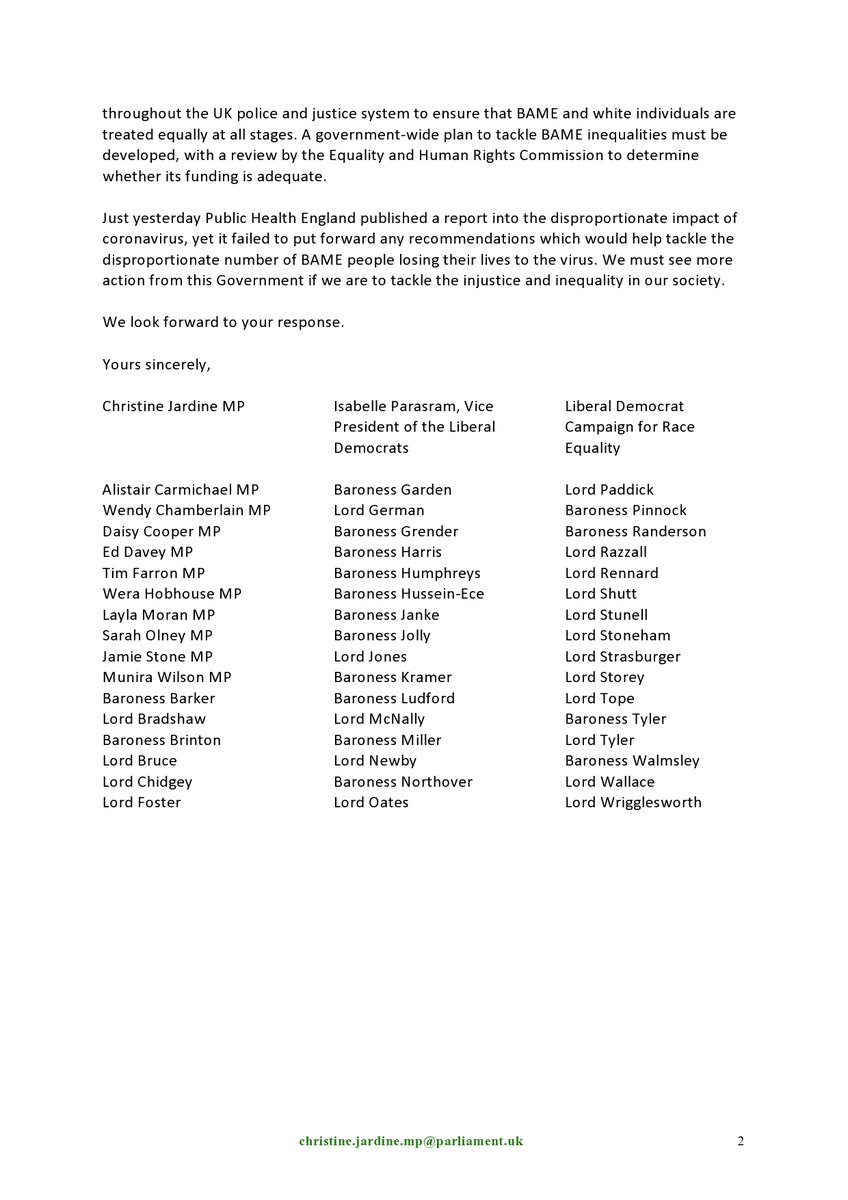 [3/4] The situation in the US is also a stark reminder of the systemic racism here in the UK. We have written to the Prime Minister urging him to set out the steps the UK government are taking to prevent deaths like George Floyd’s happening in the UK.pic.twitter.com/Mz2WO6zrk1