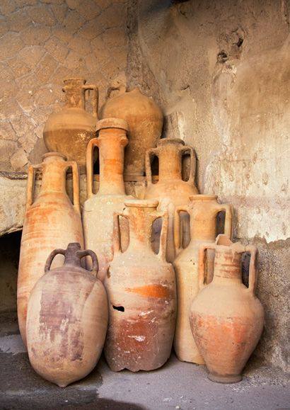 Estas ánforas estaban enterradas por la erupción del Vesubio del 79 d.C. a 50 metros debajo de la superficie de la actual ciudad de Herculano, y permanecieron intactas por más de 1900 años hasta que se excavó en el lugar donde aparecieron. Foto: Arte&Arte.