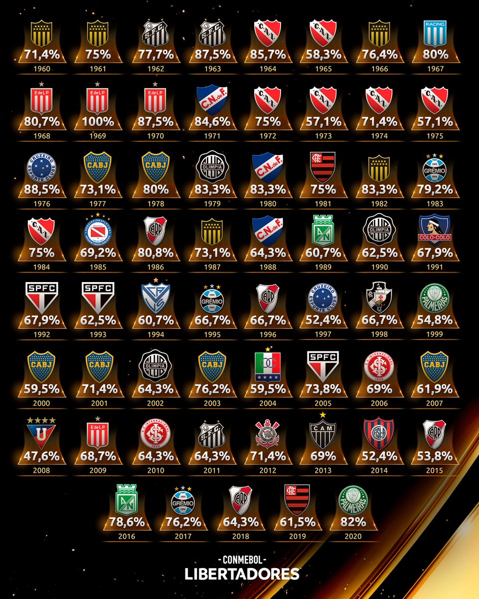 ¡El rendimiento de todos los campeones de la CONMEBOL #Libertadores