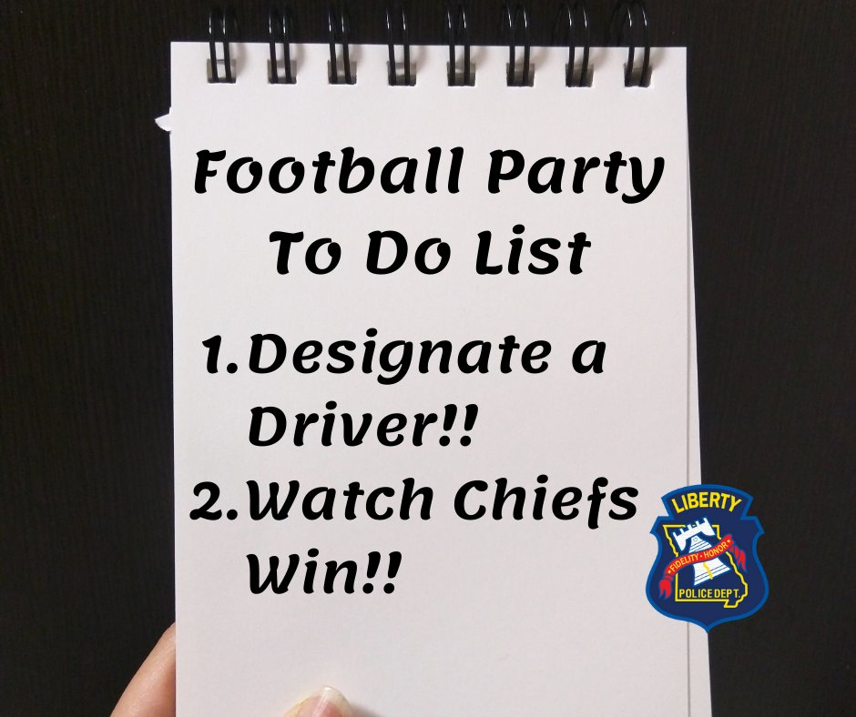 @Chiefs to win today. Remember to designate a driver before game time so we can all watch our team go on to the Super Bowl!