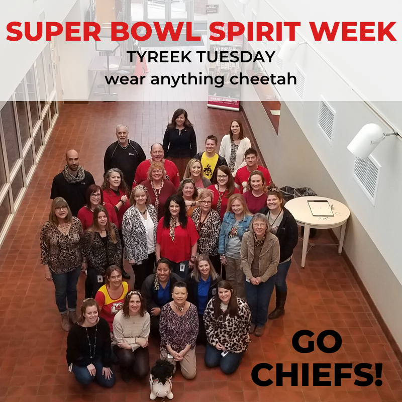 @Chiefs spirit week heading into the Super Bowl? Today is Tyreek Tuesday and City staff are decked out in cheetah print, Tyreek t-shirts and of course, Chiefs red. Tomorrow is "Winning Wednesday". Join us in repping KC in your Kansas City gear.pic.twitter.com/XNR1659FeP