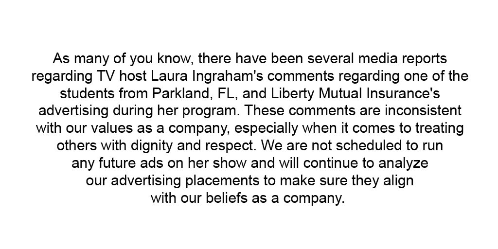 The following message was issued earlier today to employees of Liberty Mutual Insurance by David Long, Chairman and CEO:pic.twitter.com/FVyIBZrnC0