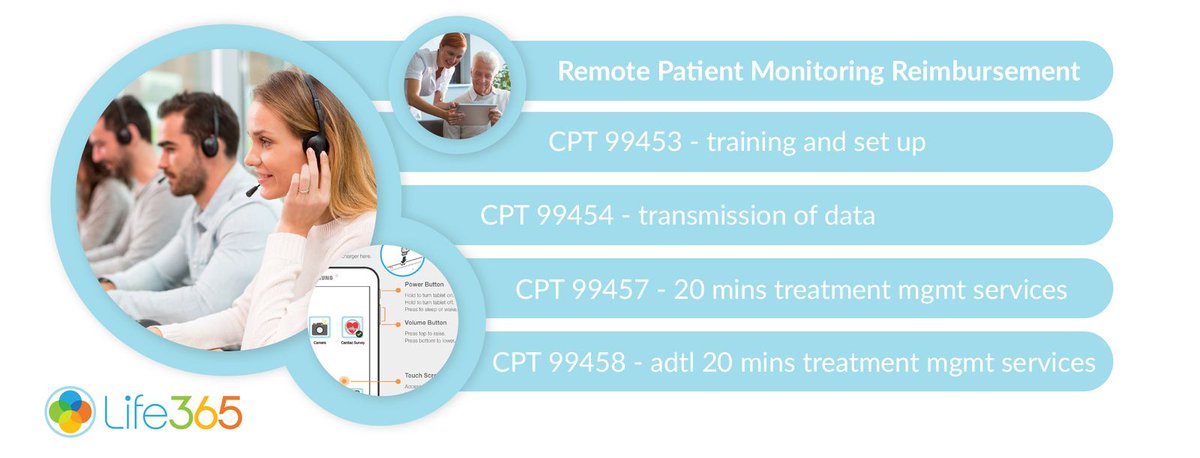 #RPM can generate more than $120/patient/month for connectivity/technology, and staff time. Contact Life365 to learn more https://www.life365.health/reimbursement pic.twitter.com/35ytR2tK8Y