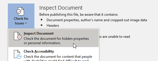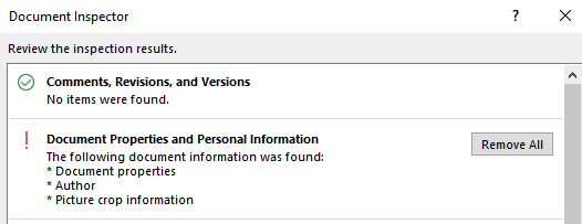 Remove metadata from Office 2016 documents using the built-in Document Inspector. What a great feature!