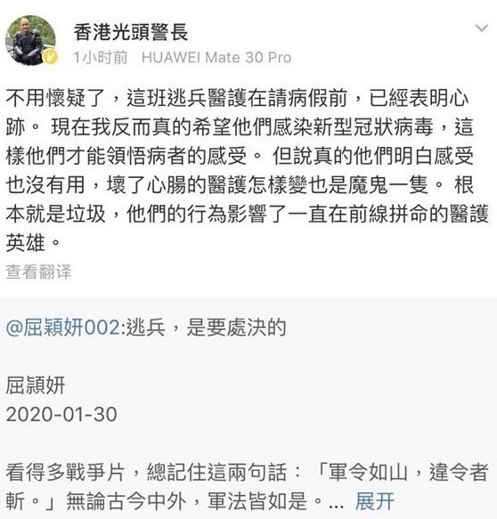 屈小姐是知名傳媒人 當以身作則 敬業樂業 帶請光頭警長護送 頭上武漢採訪 以行動證明沒有封關必要 若果屈小姐遲遲不上武漢 大家請記住 「逃兵,是要處決的」