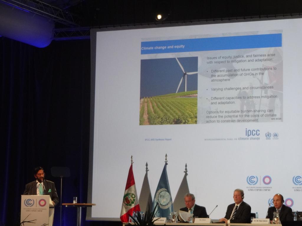 Presidente del #IPCC Rajendra Pachauri: eficiencia y equidad son motores importantes en búsqueda de soluciones #COP20pic.twitter.com/WsXCw1aRKG
