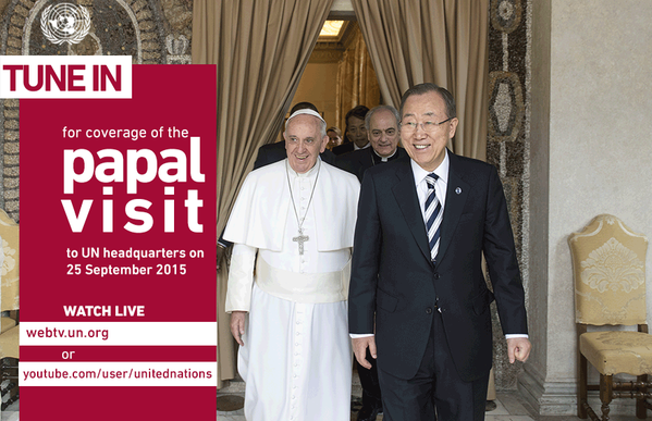 Sigue en vivo al @Pontifex en @UN este Viernes 25 Set. http://bit.ly/1FsrciB #action2015 #GlobalGoals #UNGApic.twitter.com/XkgK1qQjSq