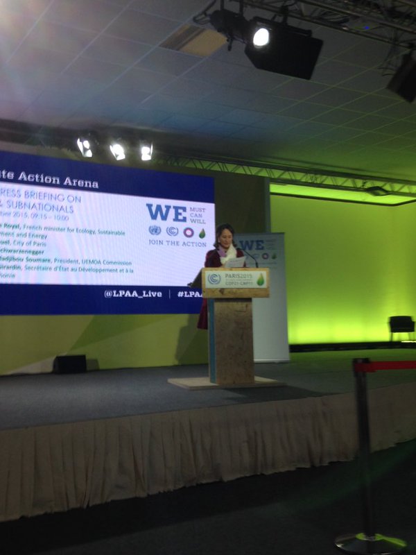 70% of concrete solutions for a sustainable development happen in cities and regions: @RoyalSegolene #LPAA #COP21pic.twitter.com/qhg2GIrxSl
