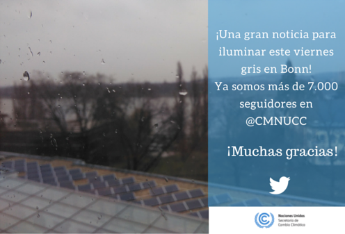 ☺♥☺♥Una gran noticia para comenzar el fin de semana con ganas de tuitear: ya somos más de 7.000 en @CMNUCC ¡Gracias!pic.twitter.com/ToMDJIrqcV
