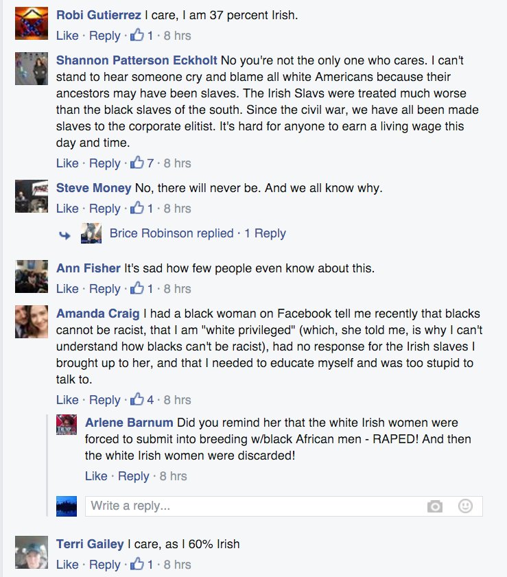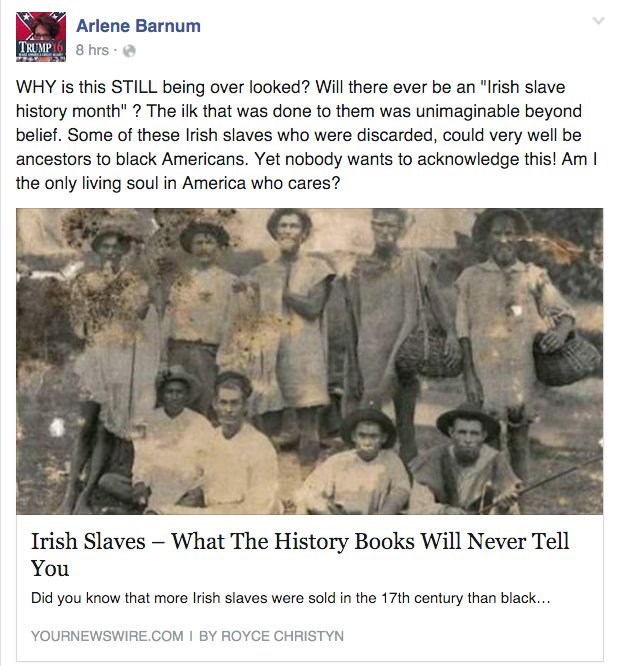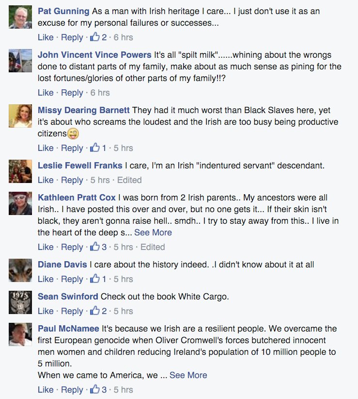 A fresh sample of the "Irish slaves" discourse on Facebook.pic.twitter.com/4eJHR6Xai1