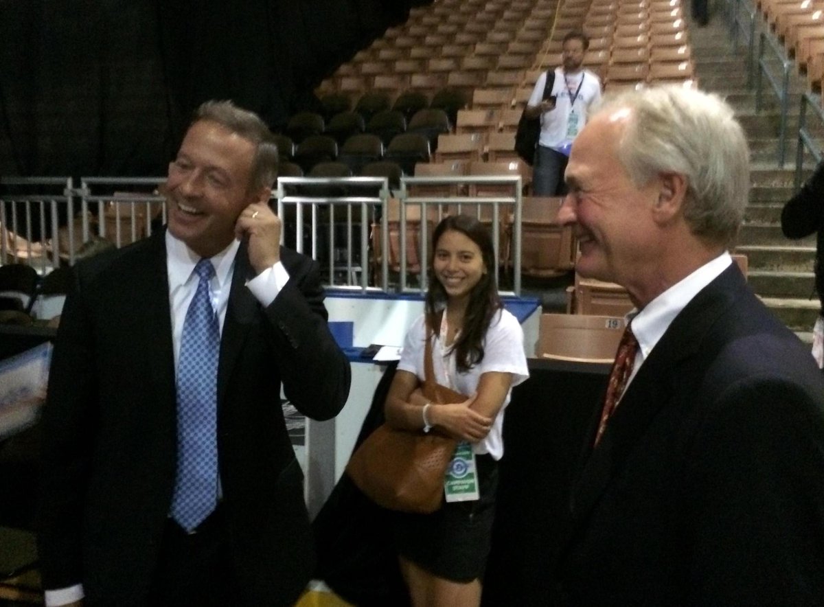 Governor O'Malley and Governor Chafee exchange pleasantries at the NH Democratic Convention. #chafee2016 #nhpoliticspic.twitter.com/lNgrIQwYyH