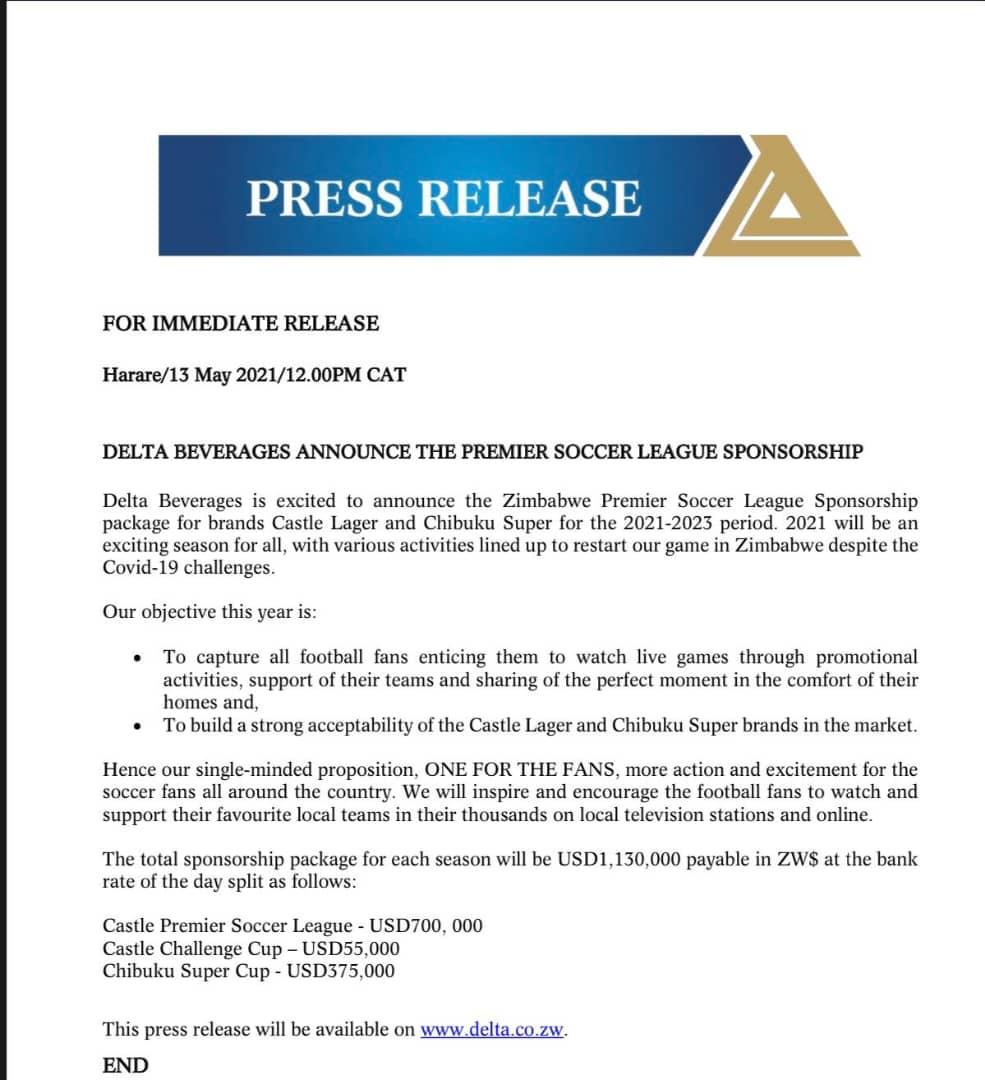 Zvakumaker sense. Thank you Delta Beverages for your continued sponsorship of our Premier Soccer League. Even though it won't be the same watching our favorite games we have to all comply to the
