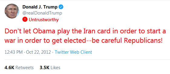 “Our President will start a war with Iran—absolutely no ability to negotiate.”