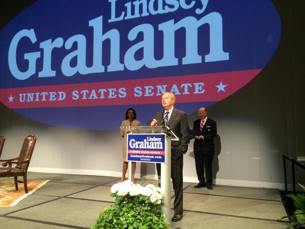 Sen. Graham takes the stage with @CondoleezzaRice and Ambassador David Wilkins. #TeamGrahampic.twitter.com/Eqpqeb2ELu