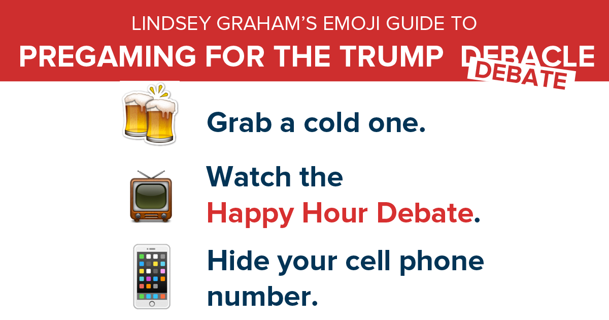 “@LindseyGrahamSC: You'll need this guide today at 5PM. #HappyHourDebate pic.twitter.com/9ohtYV4Aiq” Just loled. @sophie_tatum @kgrabar