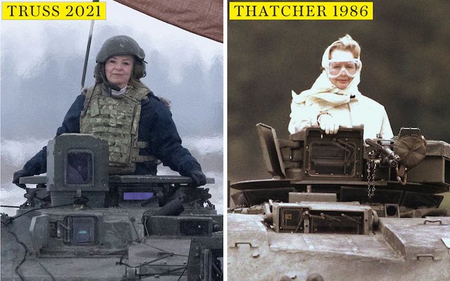 Cold War warrior Thatcher had some coherence (even if one disagreed with her) but #LizTruss on a tank in East Europe? Baiting the Russian bear. Beggars belief. Badly advised.pic.twitter.com/DtBEoPRxW7