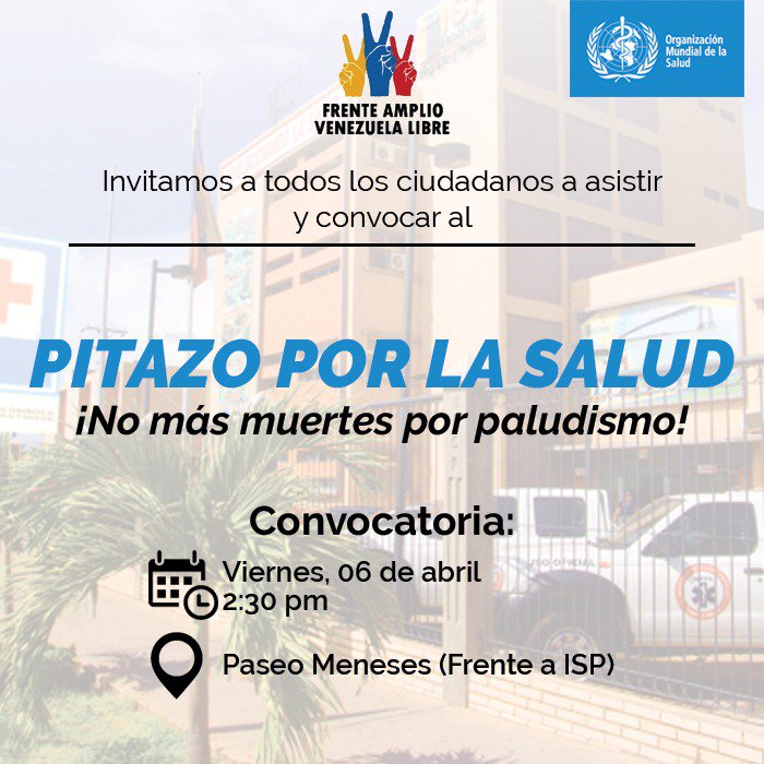 #CiudadBolivar Viernes#6abril 2:30pm. Frente al paseo meneses. NO MAS MUERTES POR PALUDISMO#SaludParaTodospic.twitter.com/LGN0N9XTQ0