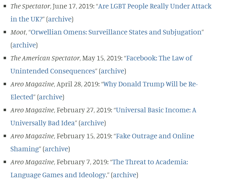 I wonder if the Spectator and Areo ("Dumber Quillette", home of the Grievance Studies Hoaxers) will be offering any explanation of his bylines in their publications?pic.twitter.com/jpMZ69N0ce