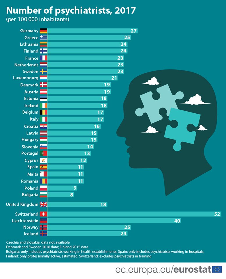 The current #coronavirus pandemic is putting extraordinary pressure on people. How many psychiatrists per 100 000 people are in your country