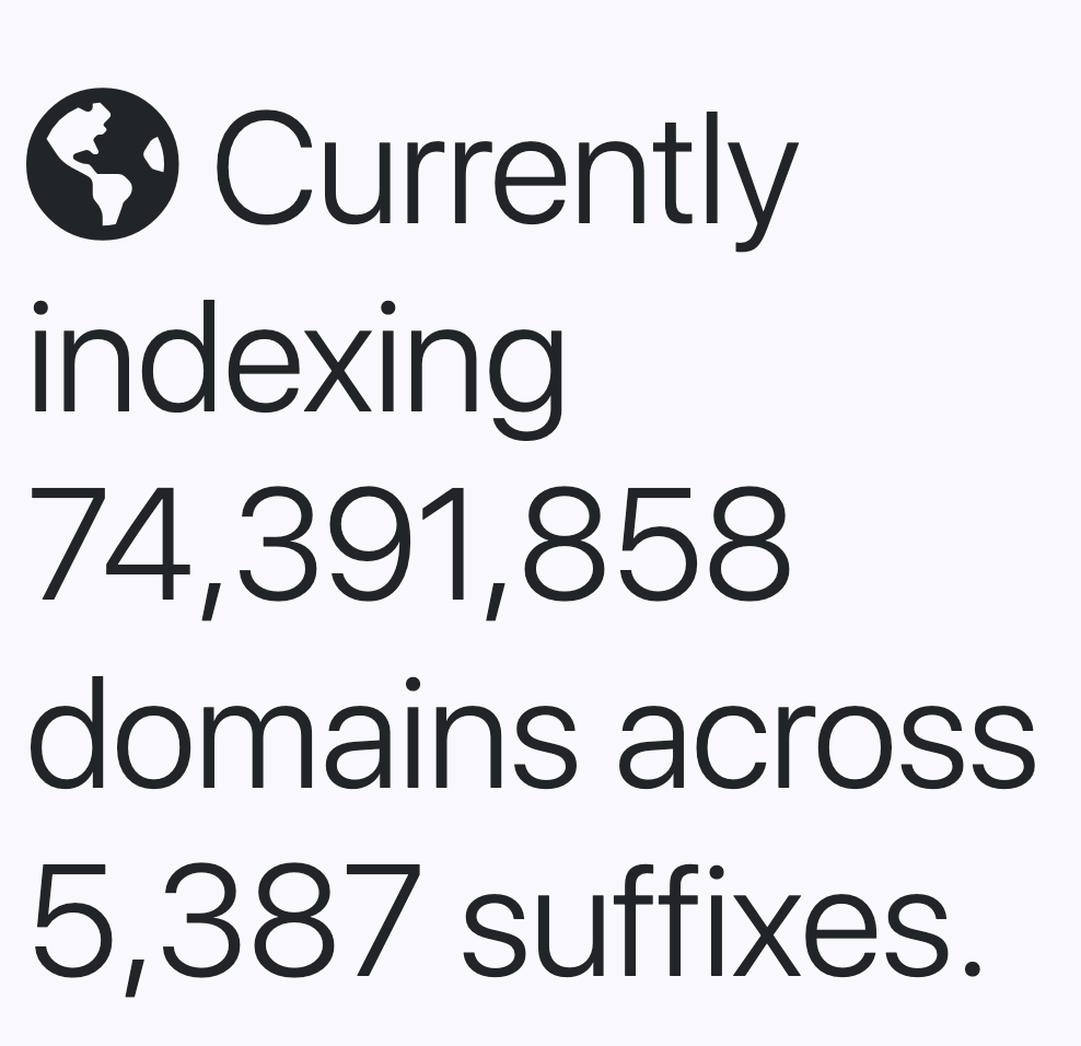 The first TheInternetBackup domain list is now available, it contains ~75 Million domain(s) across 5,387 suffixes. Download it here: https://theinternetbackup.com/#database Still a lot more domains in the submissions pipeline. Likely their will be many more available in the dump next month!pic.twitter.com/MSdnQU4kue