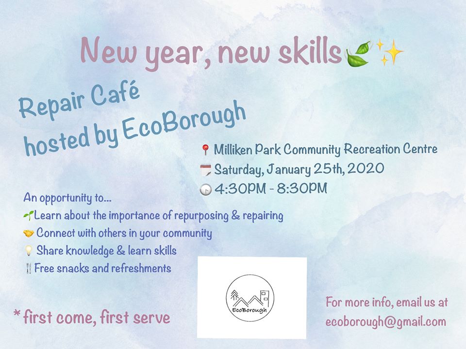 Do you have something that's broken and needs to be fixed? Check out EcoBorough's Repair Cafe on Saturday, January 25 at Milliken Park Community Recreation Centre! https://bit.ly/37nhj5P pic.twitter.com/RBrM4574lY