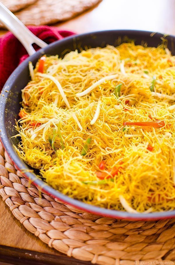 Vegetarian Singapore noodles! This recipe is loaded with bell peppers, snow peas, bean sprouts, curry powder + turmeric. RECIPE: https://buff.ly/2A0pgQM