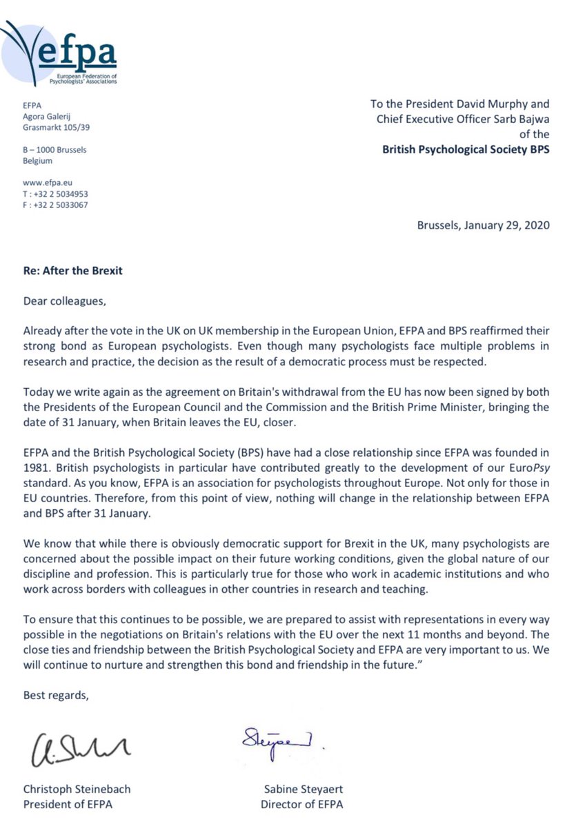 @EFPA_EuroPsy colleagues reaching out to@BPSOfficial and the many UK psychologists who want to continue collaborating with our colleagues across Europe#Brexitpic.twitter.com/tv5Oxv3U9l