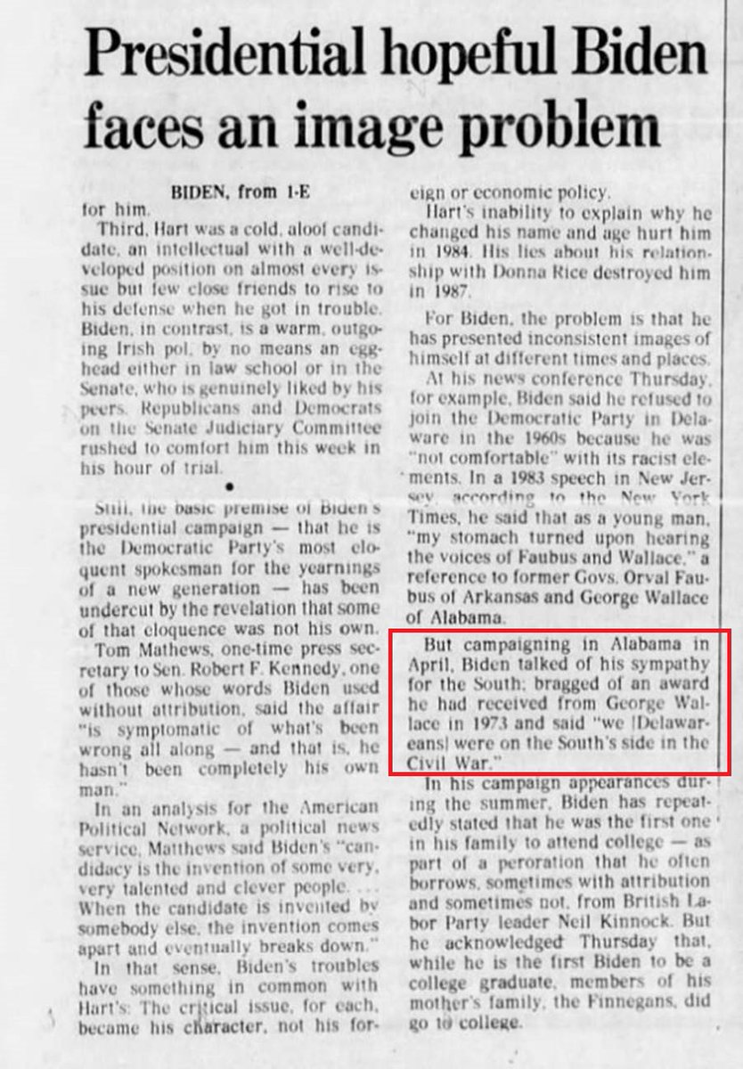 Does Joe Biden have any idea that Joe Biden has "sympathy for the south," bragged that he received an award from racist Democrat George Wallace, and bragged about being on "the South's side of the Civil War"?pic.twitter.com/OgfzqwTCix