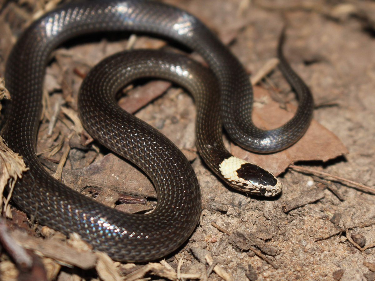 Gorgeous, tiny, recently hatched White Crowned Snake from a