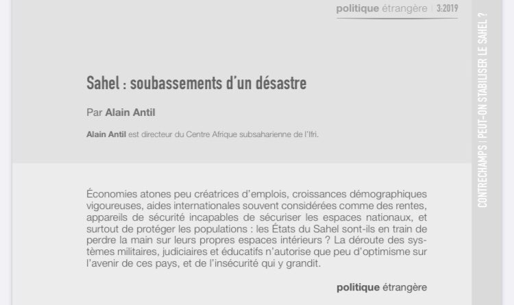 Sur les multiples défaillances de certains États sahéliens en termes sécuritaires -notamment comment les milices supplantent les armées même dans zones proches du pouvoir-, politiques, (corruption, passivité ds élites), éducatifs, judiciaires. @AlainAntil http://politique-etrangere.com/wp-content/uploads/2019/09/PE-3_2019-Alain-Antil.pdf … pic.twitter.com/xSCio7opay