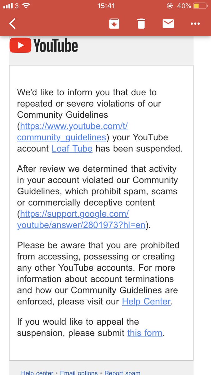 @TeamYouTube WHAT IS THIS ABOUT. How can I get suspended when I had 0 community guideline strikes and 0 copyright strikes. THIS WEBSITE IS A JOKEpic.twitter.com/b8gj5Lr9wr