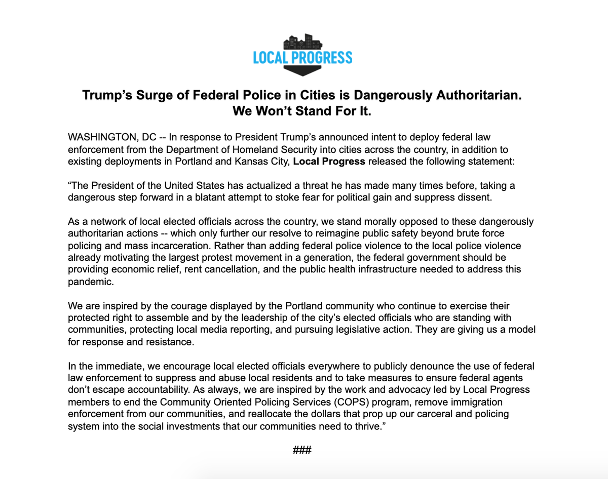 We are local elected officials fighting for racial and economic justice. We build power with community to reshape what's possible in our localities.