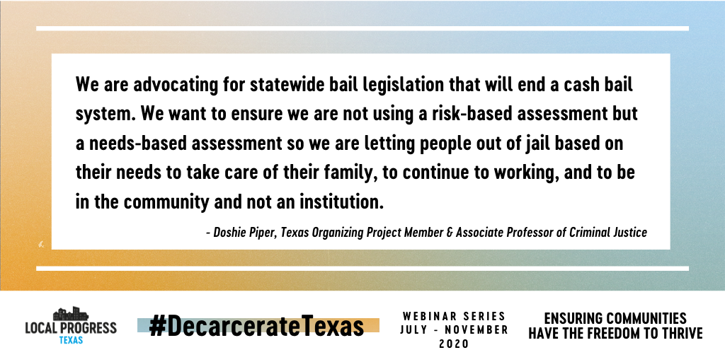 .@TXOrgProject's Right2Justice Coordinator David Villalobos and Associate Professor @doshiepiper share about the amazing work Texas communities are doing -- including pushing for statewide bail legislation that would end cash bail. #DecarcerateTexaspic.twitter.com/tJc76304cU