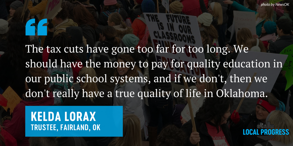 Local Progress member Kelda Lorax, Trustee of Fairland, OK is out at the local rally as we speak.