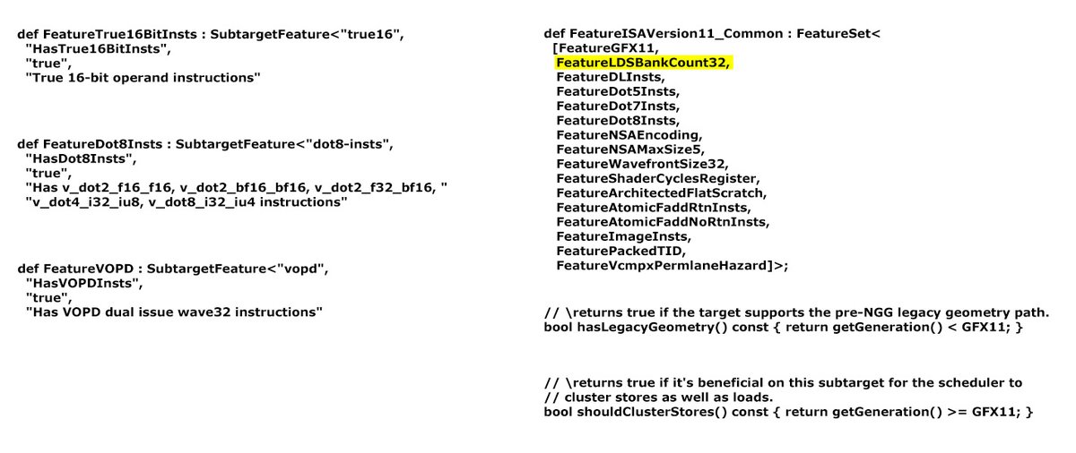 What I noticed: - "True" 16 bit instructions - Dot8 includes 16-Bit accumulate (not only 32b) and RDNA3 supports now Brain Floating-Point 16. - Dual-Issue Wave32 could mean at the same time and not one after another, as for Wave64? - LDSBankCount is still 32 - Clustered Stores. https://twitter.com/winterstars4/status/1524403743374319621 …pic.twitter.com/CW9mSsSoSR
