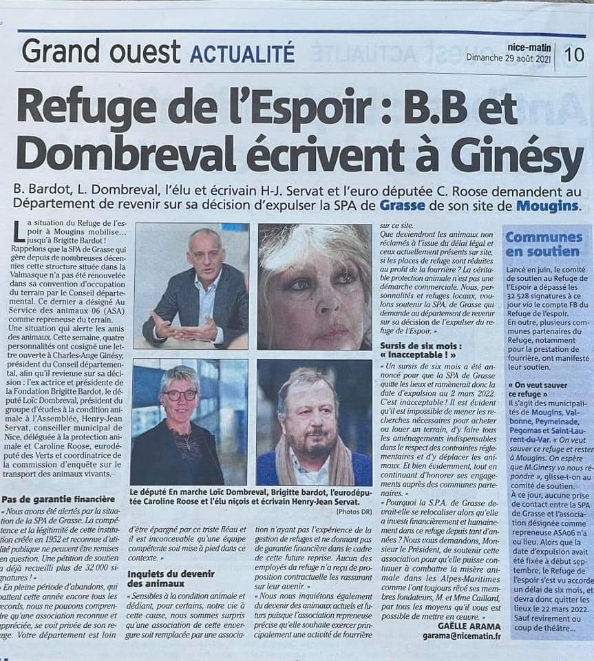@brigitte_bardot,@FBB_Officiel,@LoicDombreval,@HenryJeanServat et@CarolineRooseEU pour leur soutien à l'équipe du refuge de l'espoir ! M@ca_ginesy, nous espérons que vous entendrez leur appel !#soutienrefugedelespoir#refugedecoeurpic.twitter.com/3tgbAa5f8c