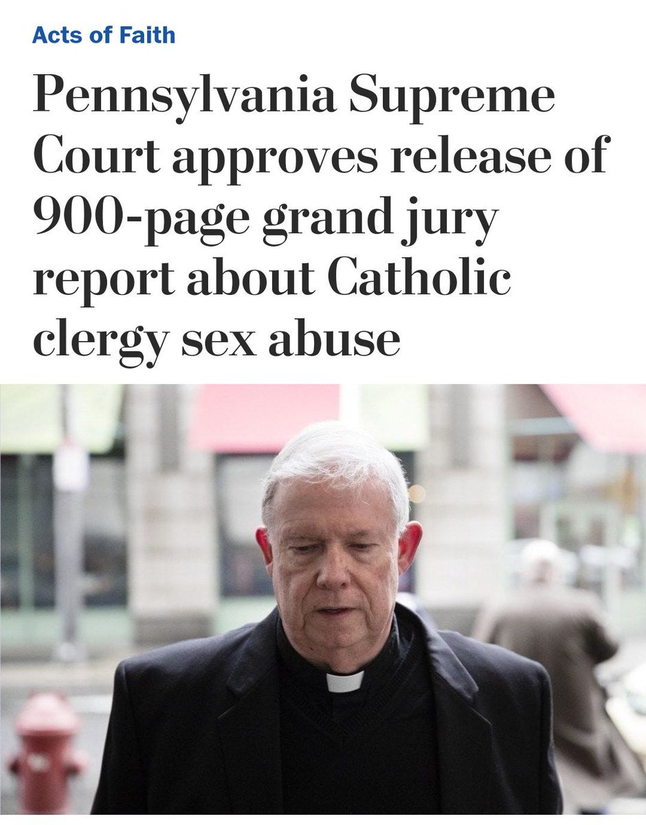300 priests in 6 dioceses jfc [https://www.washingtonpost.com/news/acts-of-faith/wp/2018/07/27/pennsylvania-supreme-court-oks-release-of-900-page-grand-jury-report-about-catholic-clergy-sex-abuse/ …] pic.twitter.com/fkoVm5IfD8